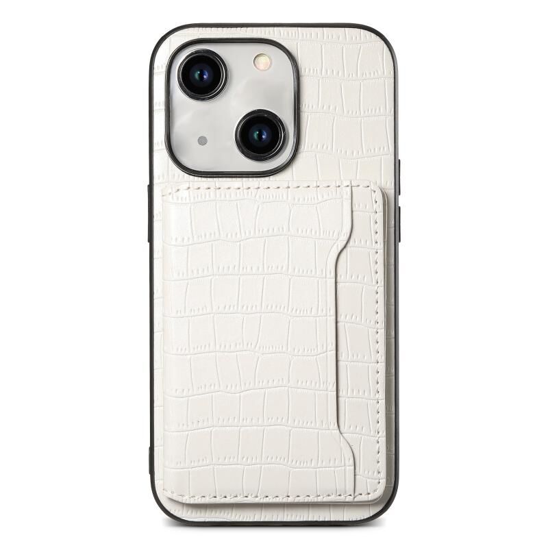 Θήκη τηλεφώνου πλήρους κάλυψης με σχέδιο τσάντας κάρτας υφής κροκόδειλου για iPhone 15 (Καφέ)