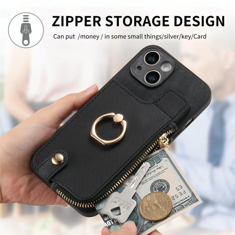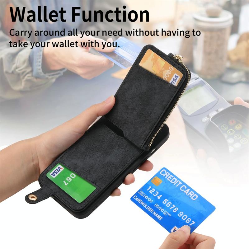 2. Zipper Wallet Function: The leather case is equipped with card slots for placing cards and a small amount of cash.