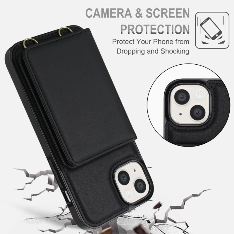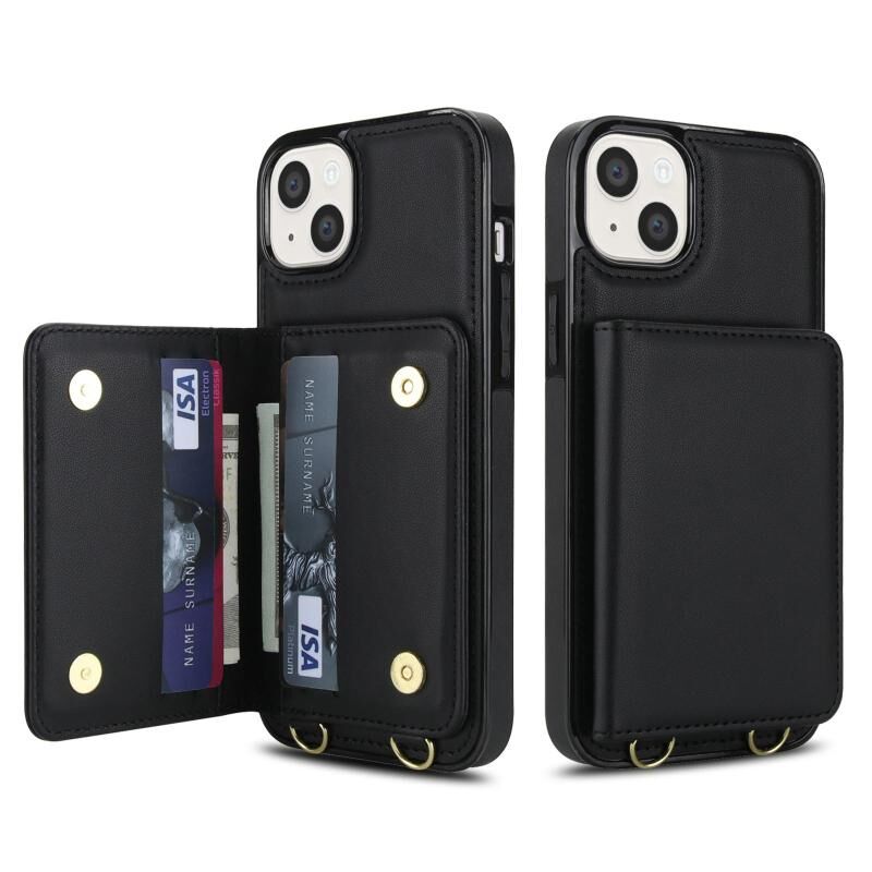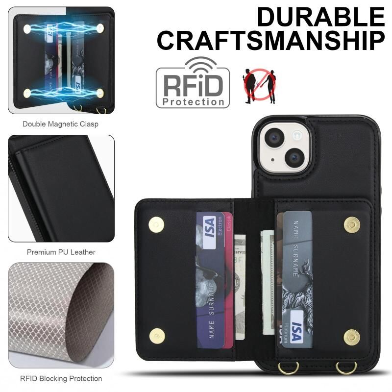 Θήκη τηλεφώνου από δέρμα για iPhone 15, τύπου τσάντας με διπλή αγκράφα και προστασία RFID (Μαύρο)