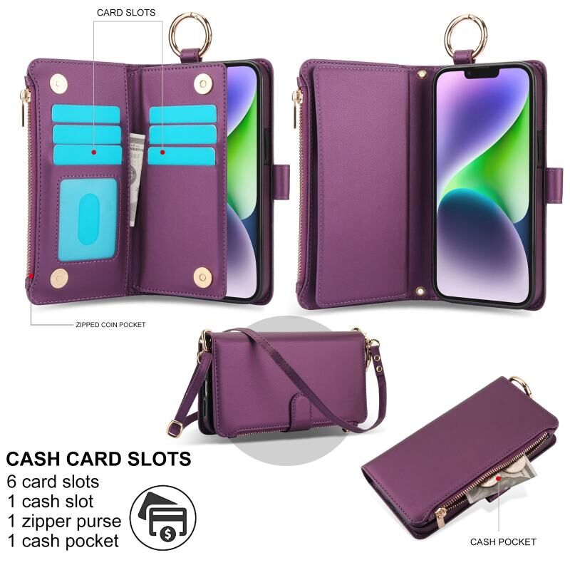 2. Λειτουργία πολλαπλών καρτών & πορτοφολιού: 6 υποδοχές καρτών και ένα διαμέρισμα με φερμουάρ για την αποθήκευση των πιστωτικών σας καρτών, μετρητών ή μικρών σημειώσεων για καθημερινή χρήση.
