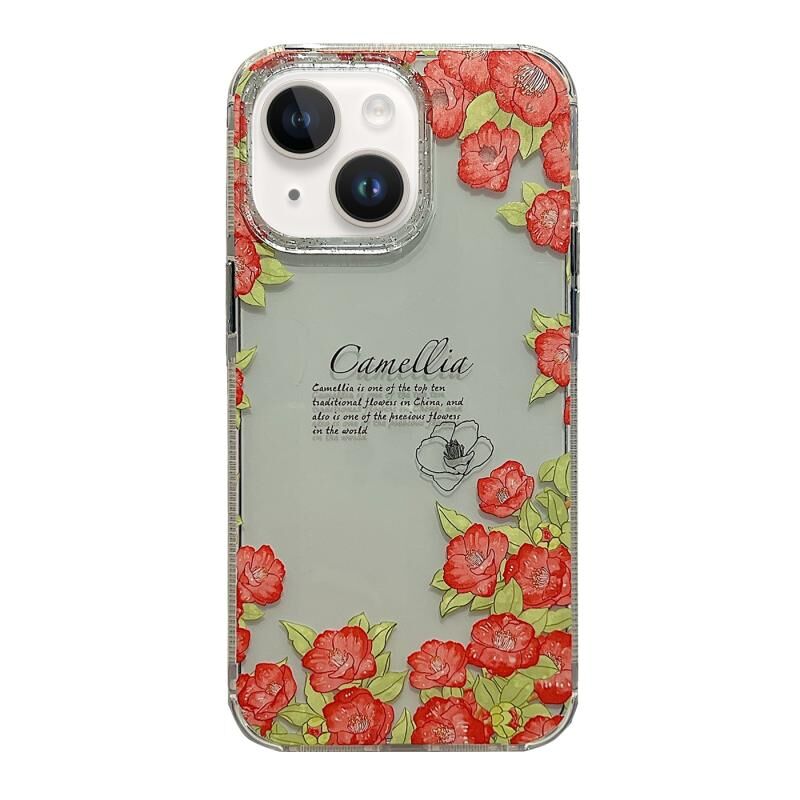 For iPhone 15 Crystal Ice Cooling Shockproof TPU Phone Case(Red Flower)