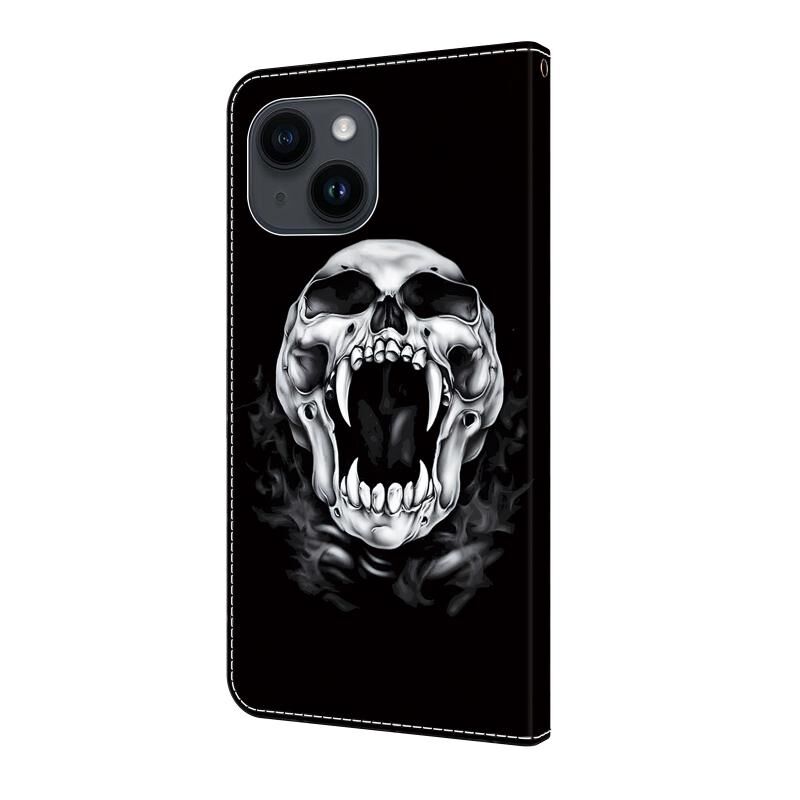 Θήκη τηλεφώνου από κρυστάλλινο βαμμένο δέρμα για iPhone 15 (Κρανίο)