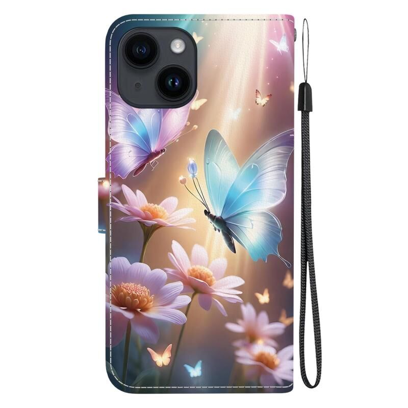 Θήκη τηλεφώνου από δέρμα με πολύχρωμο σχέδιο κρυστάλλινης υφής για iPhone 15 (Κόκκινο)