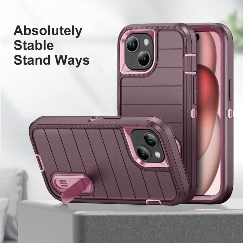 Θήκη κινητού τηλεφώνου iPhone 15 Defender Gen2, ανθεκτική από πολυανθρακικό + σιλικόνη με βάση στήριξης (Σκούρο Μπλε + Κυανό)