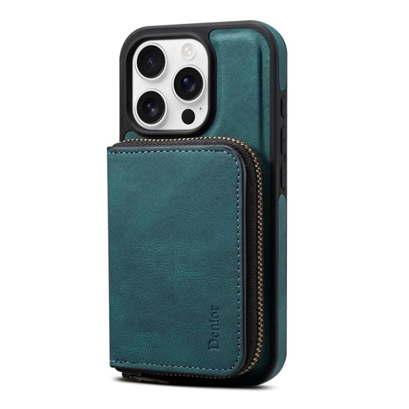 Θήκη τηλεφώνου δερμάτινη για iPhone 15 Denior D26 με αίσθηση δέρματος, MagSafe και φερμουάρ (Μαύρο) (Μπλε)