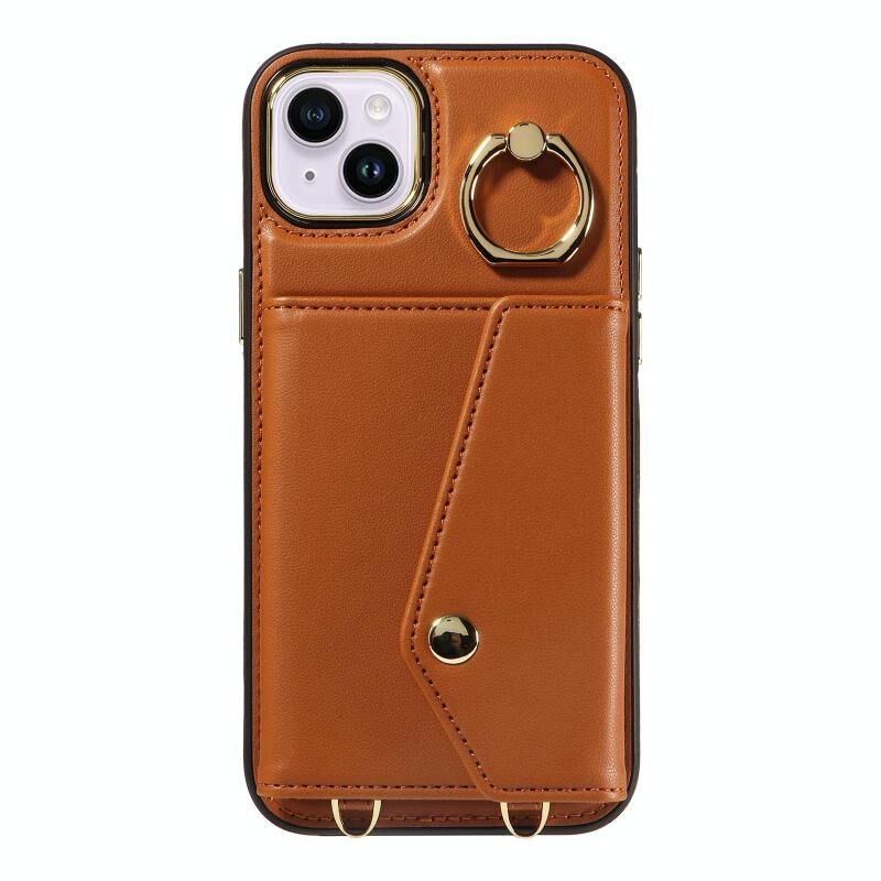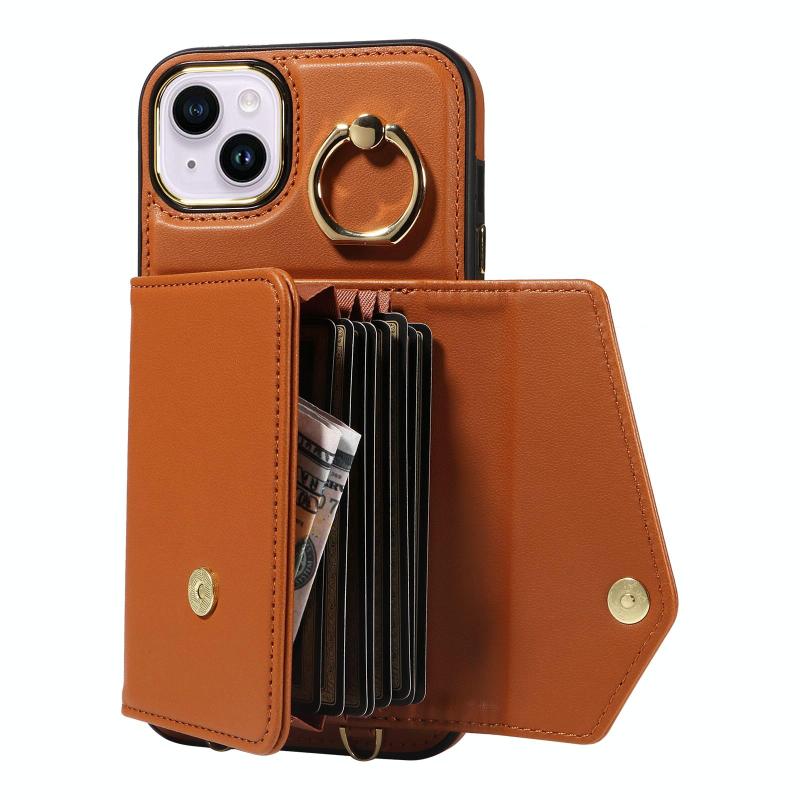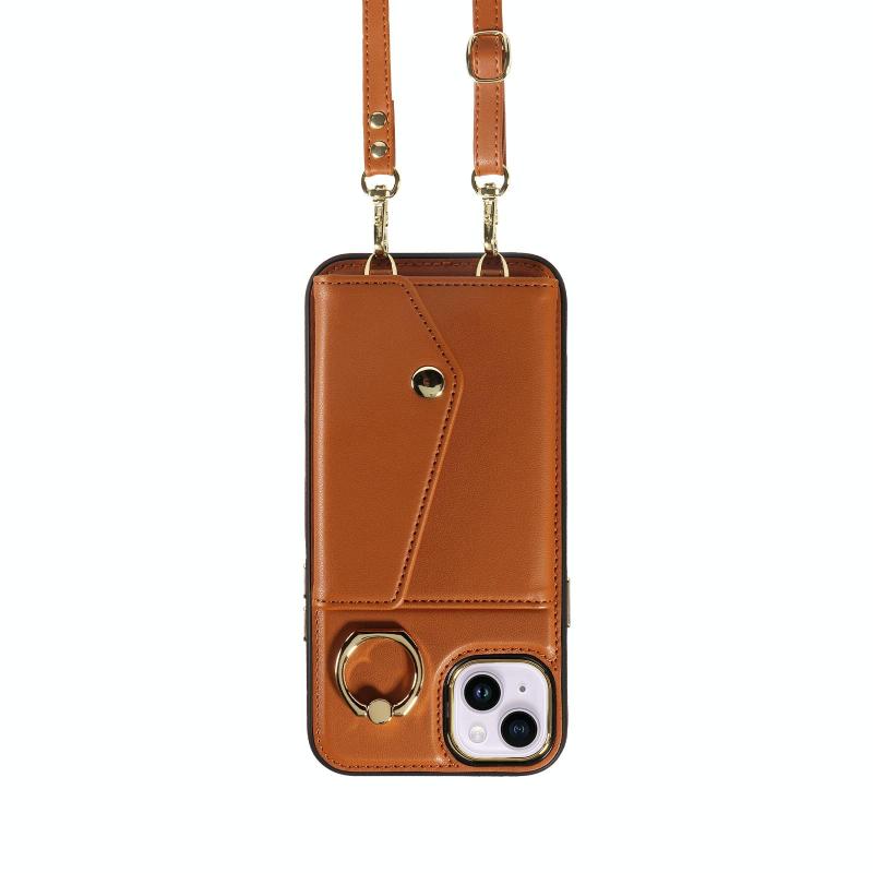 For iPhone 15 Diagonal Crossbody Ring Organ Wallet Leather Back Phone Case(Brown)
