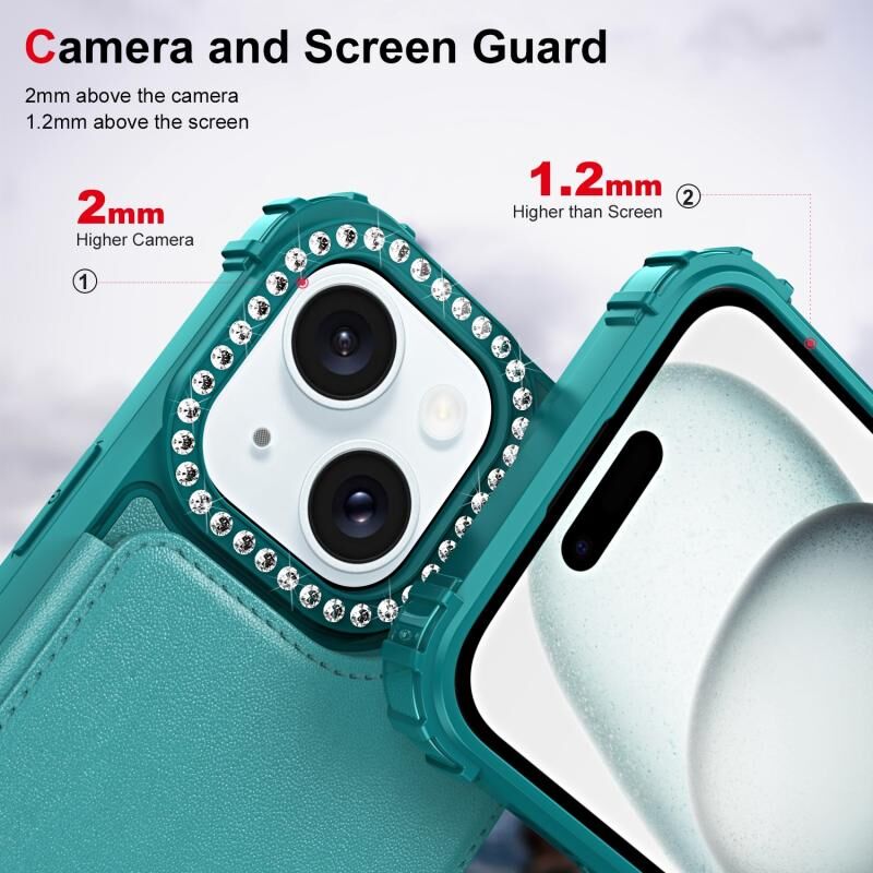 7. Stylish Bling Glitter Rhinestone Diamond Lens Frame: Beauty diamonds that sparkle and shine, making your phone look more stylish and luxurious.