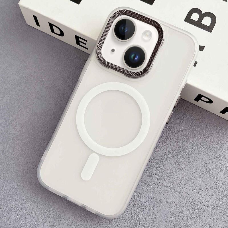 Θήκη τηλεφώνου για iPhone 15, Υβριδική από PC και TPU με Μαγνητική Στήριξη MagSafe και περίγραμμα φακού διαμαντιού (Γκρι)