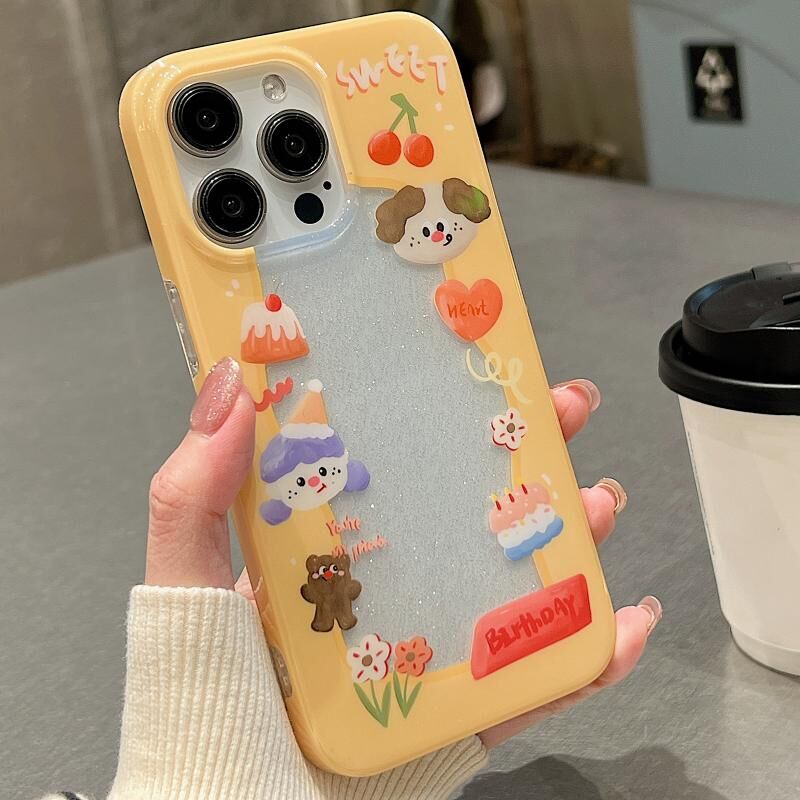 Θήκη τηλεφώνου για iPhone 15, Διπλής Όψης IMD, Πλήρης Κάλυψη, TPU (Κέικ με Κουτάβι)