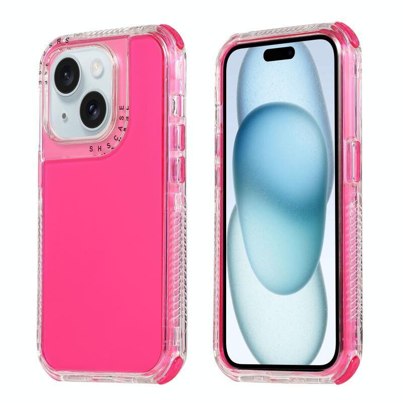For iPhone 15 Dreamland 3 in 1 Clear Color Transparent Frame PC + TPU Phone Case(Rose Red)