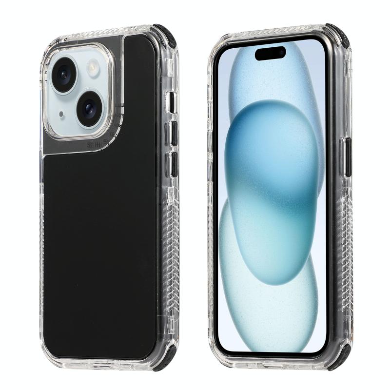 For iPhone 15 Dreamland 3 in 1 Solid Color Transparent Frame PC + TPU Phone Case(Black)