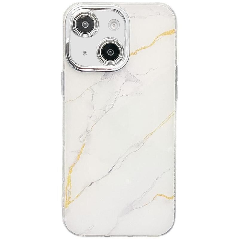 For iPhone 15 Electroplated Marble Texture Phone Case(Gold White M1)
