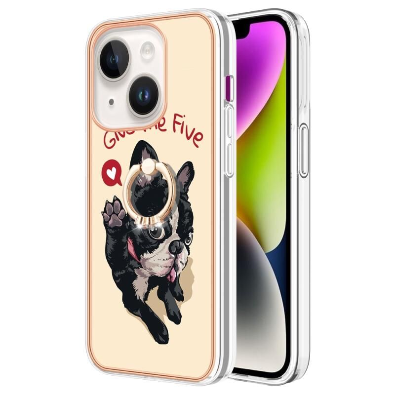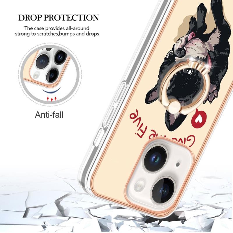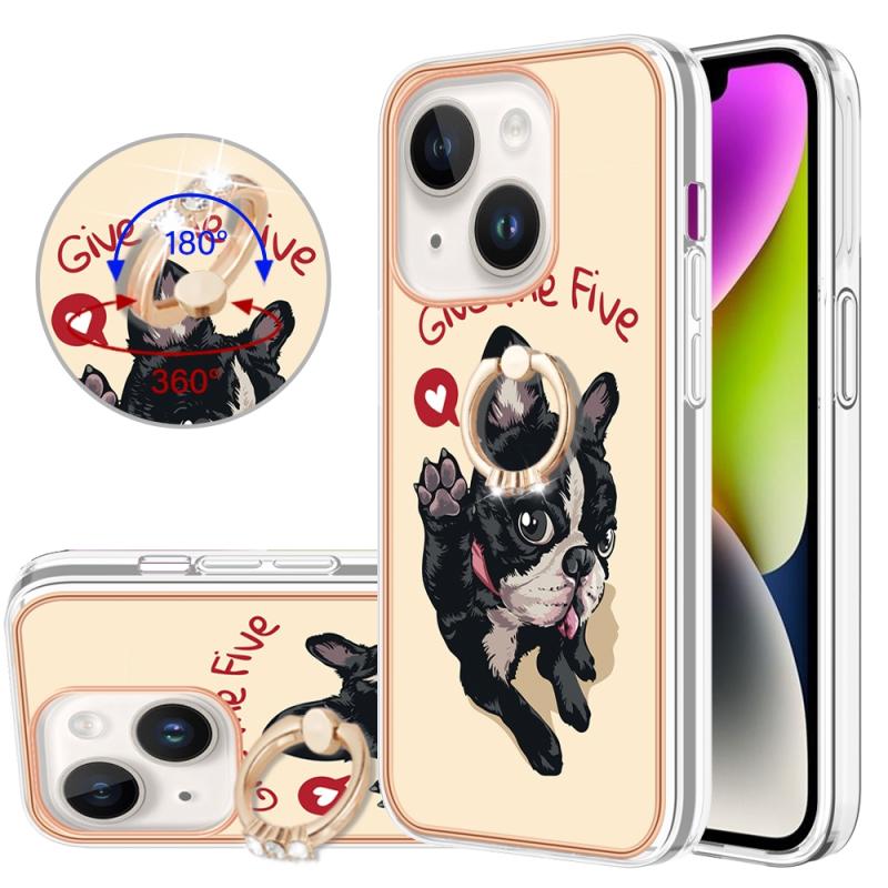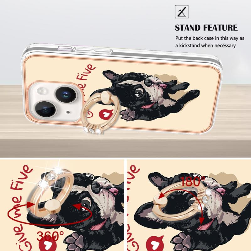 For iPhone 15 Electroplating Dual-side IMD Phone Case with Ring Holder(Lucky Dog)