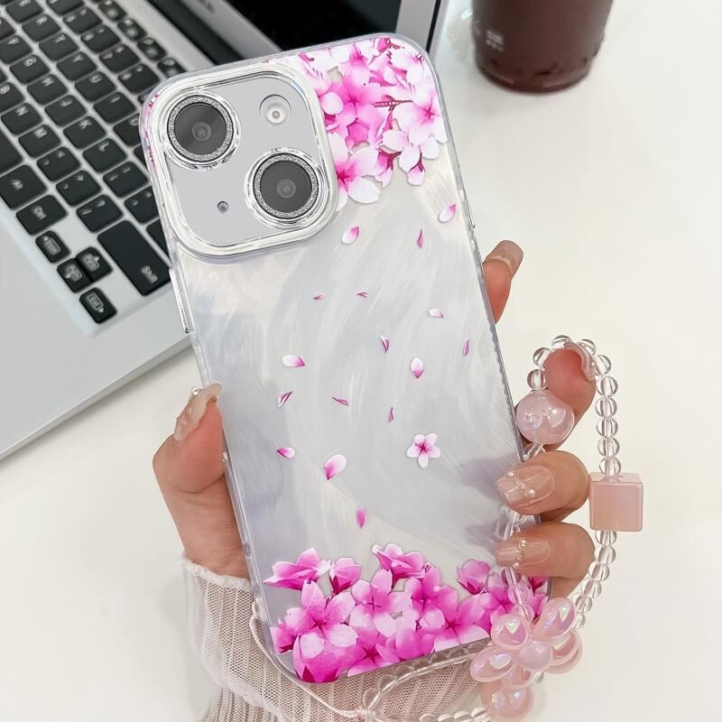 For iPhone 15 Electroplating Flowers Plants Texture Wristband TPU Phone Case(Sakura FL12)