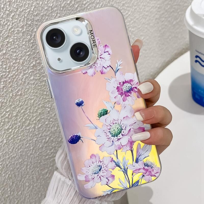 For iPhone 15 Electroplating Laser Flower Texture TPU Phone Case(Zinnia AH9)