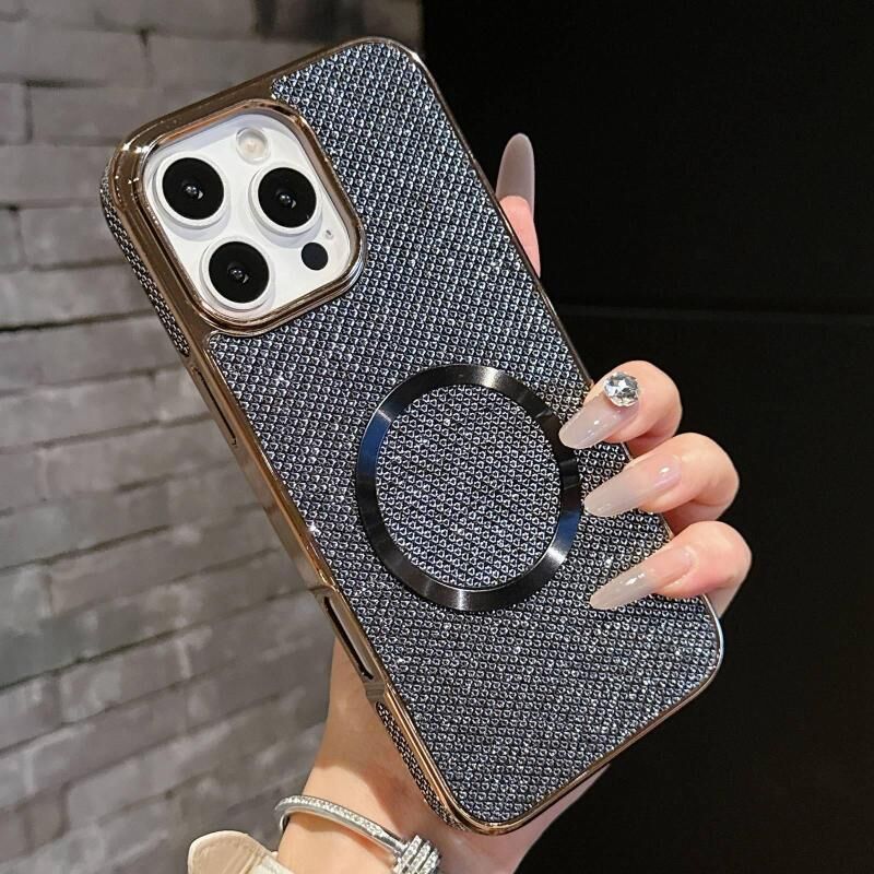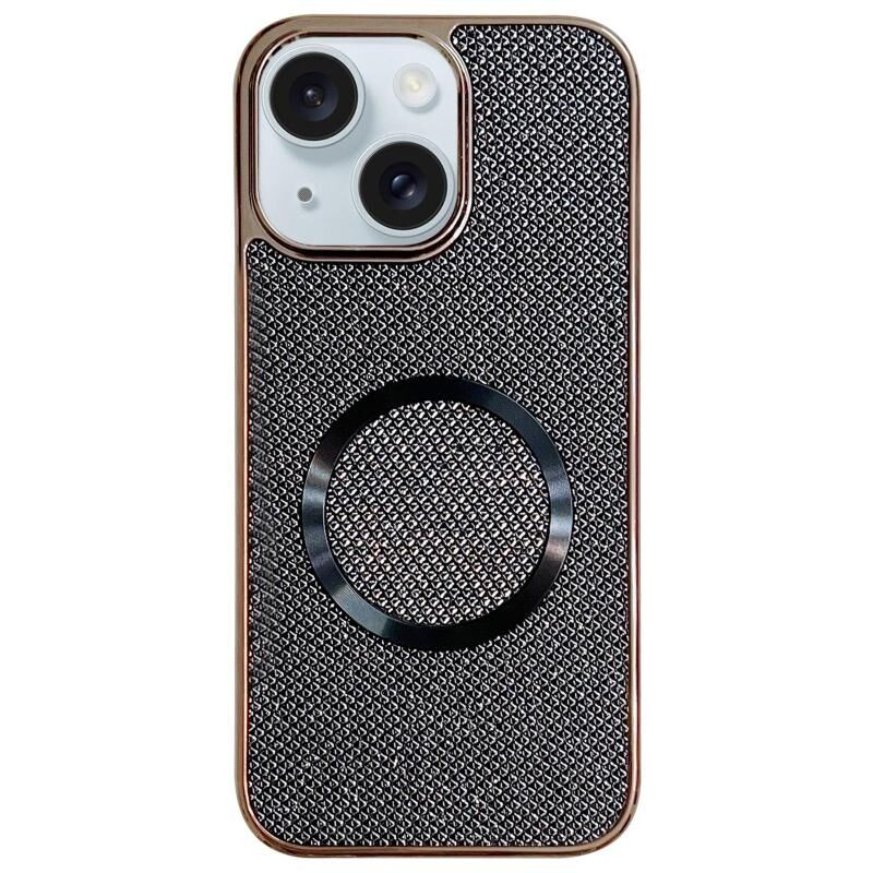For iPhone 15 Electroplating PC Glitter Grain MagSafe Phone Case(Black)