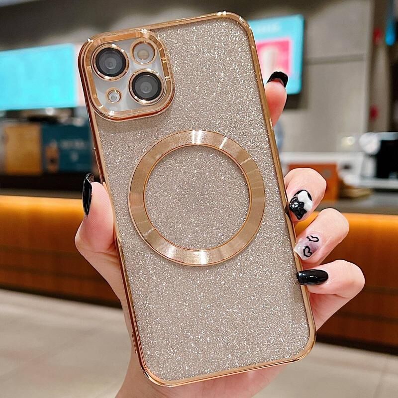 Θήκη τηλεφώνου MagSafe με ηλεκτρολυτική επιμετάλλωση, καθαρό χρώμα και γκλίτερ (σκούρο μπλε) για iPhone 15. (Χρυσός)