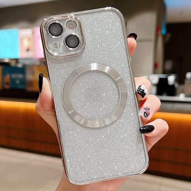 Θήκη τηλεφώνου MagSafe με ηλεκτρολυτική επιμετάλλωση, καθαρό χρώμα και γκλίτερ (σκούρο μπλε) για iPhone 15. (Ασημί)