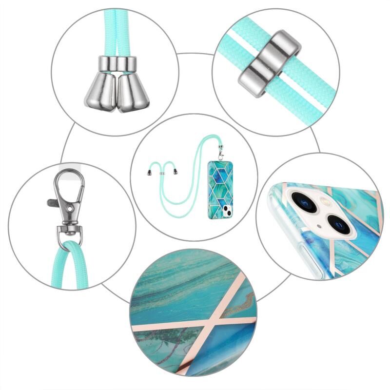 Θήκη για iPhone 15 με ηλεκτρολυτική επιμετάλλωση, συνδυασμό μοτίβου μαρμάρου IMD TPU αντικραδασμική με λουρί λαιμού (Ροζ Λευκό)