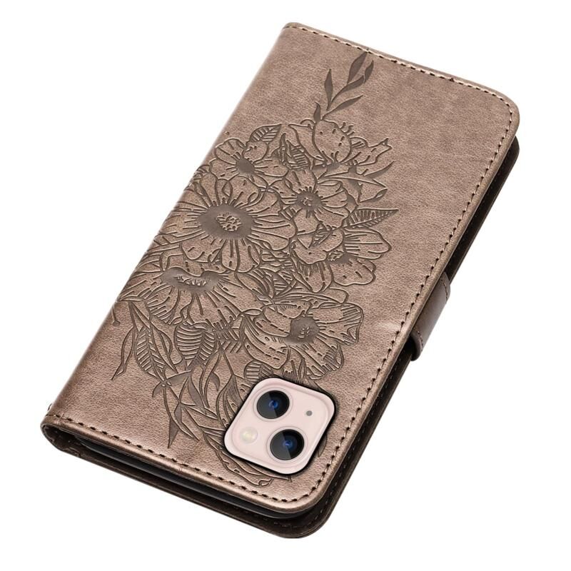 Θήκη τηλεφώνου από δέρμα με ανάγλυφο σχέδιο πεταλούδας για iPhone 15 (Γκρι)