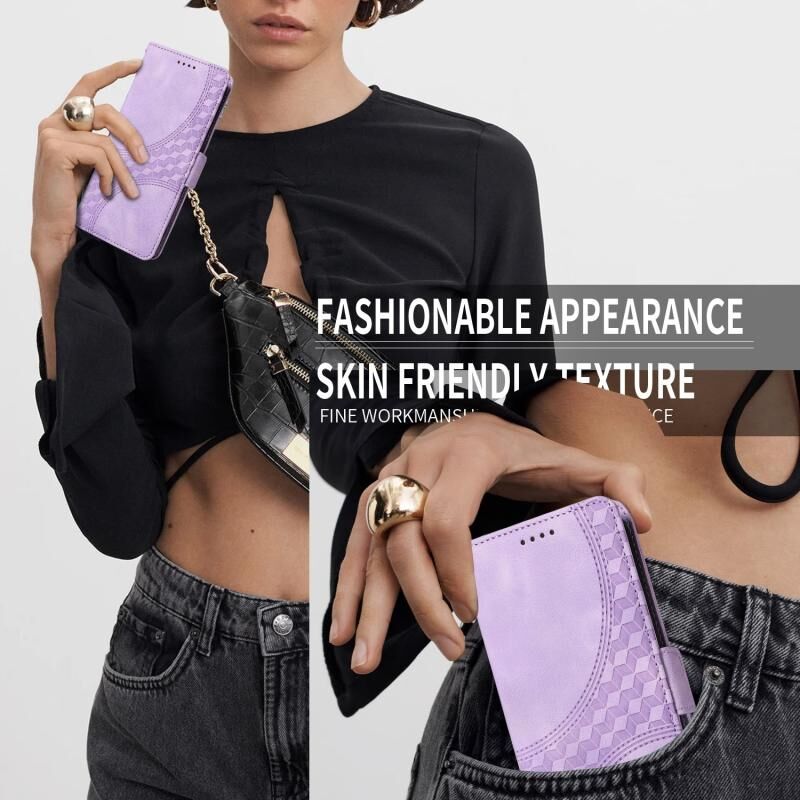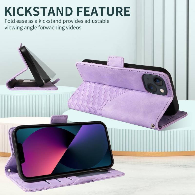 Θήκη τηλεφώνου από δέρμα με ανάγλυφο ρόμβο και αστρικό σχέδιο για iPhone 15 (Μωβ)