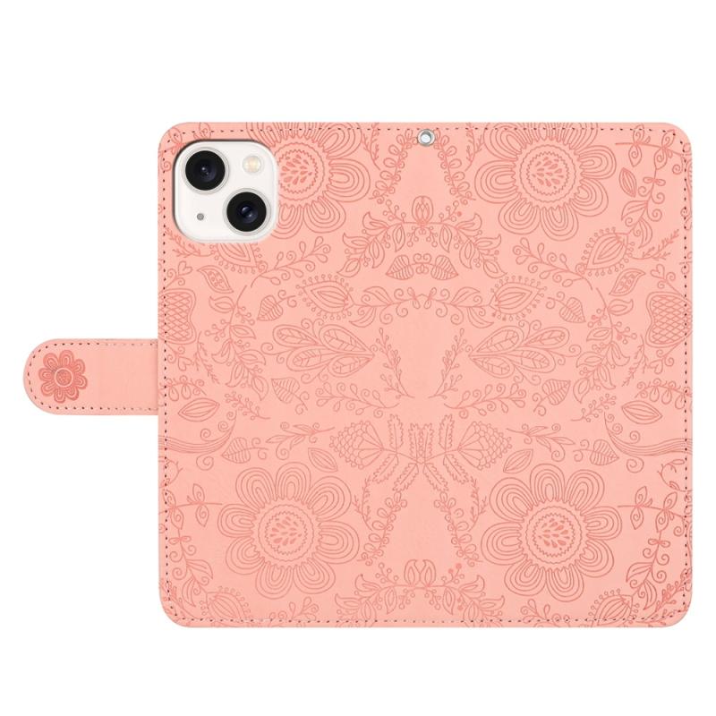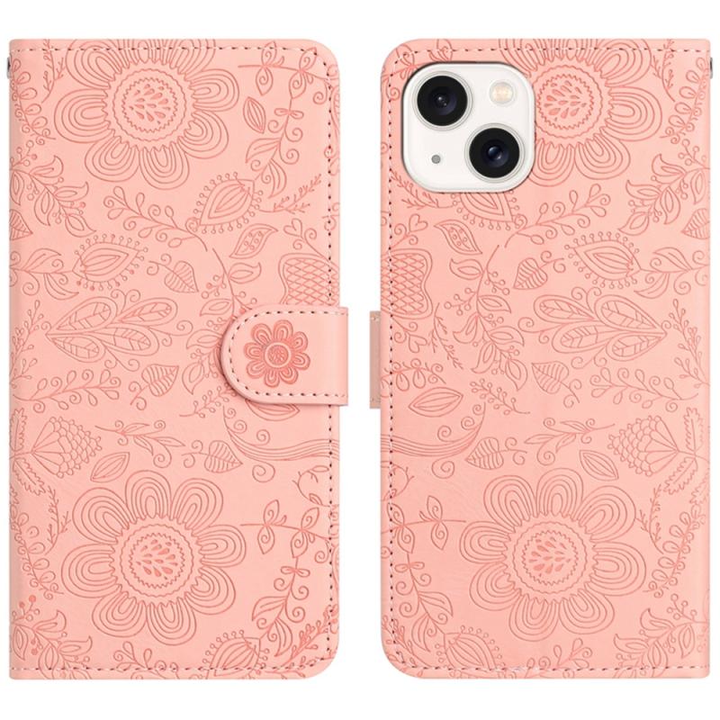 For iPhone 15 Floral Embossed Pattern Leather Phone Case(Pink)