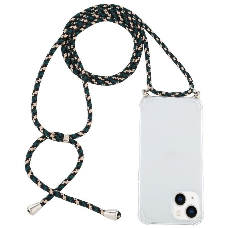 Θήκη για iPhone 15, Διαφανής TPU ανθεκτική στις κρούσεις, με προστασία στις τέσσερις γωνίες και λουρί (Πράσινο Μαύρο)
