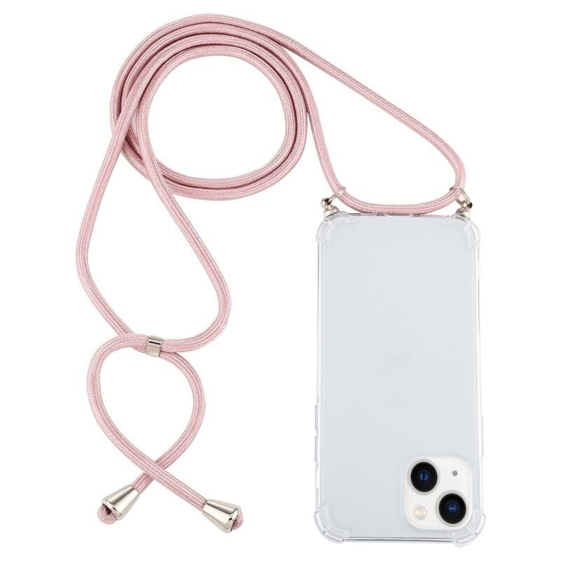 Θήκη για iPhone 15, Διαφανής TPU ανθεκτική στις κρούσεις, με προστασία στις τέσσερις γωνίες και λουρί (ρόζ)