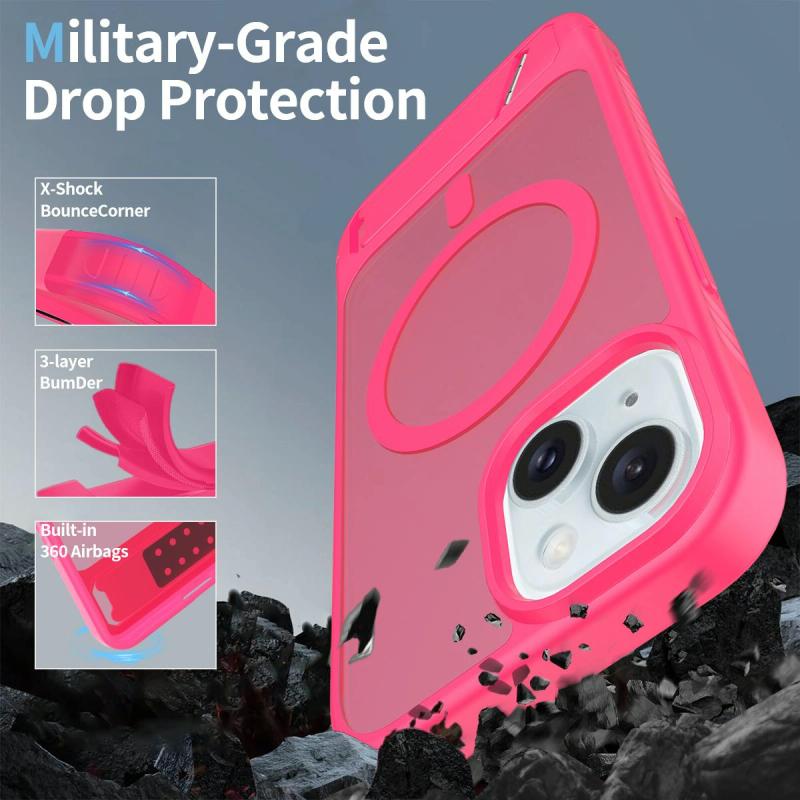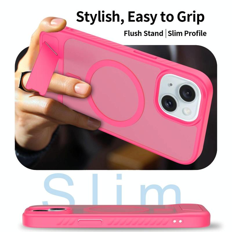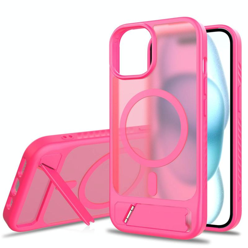 For iPhone 15 Frosted Holder PC Hybrid TPU MagSafe Phone Case(Rose Red)
