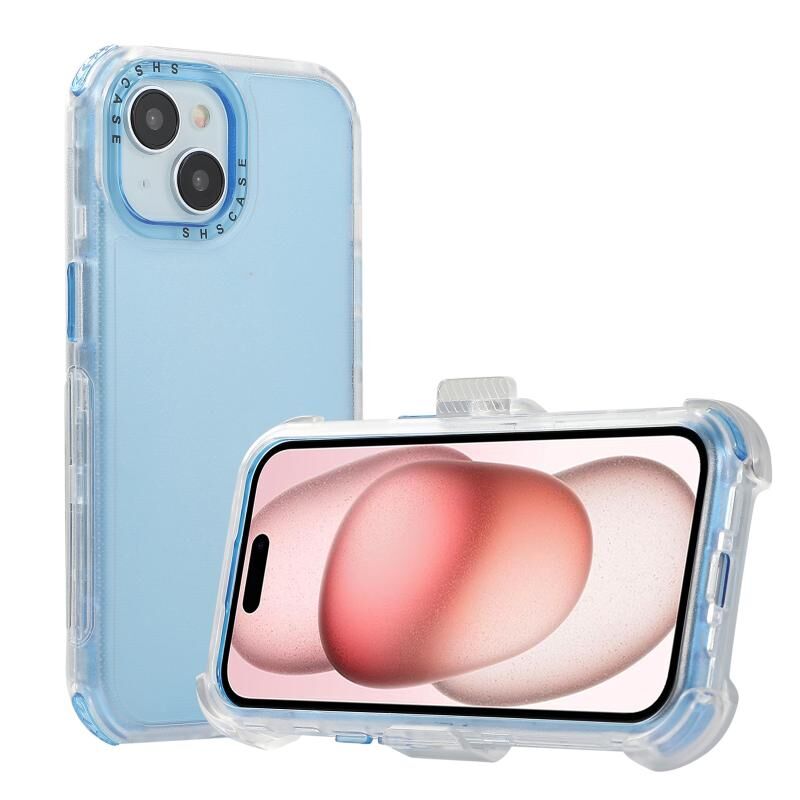 Θήκη τηλεφώνου για iPhone 15 από ματ πολυανθρακικό + TPU με κλιπ στην πλάτη (Λευκό)