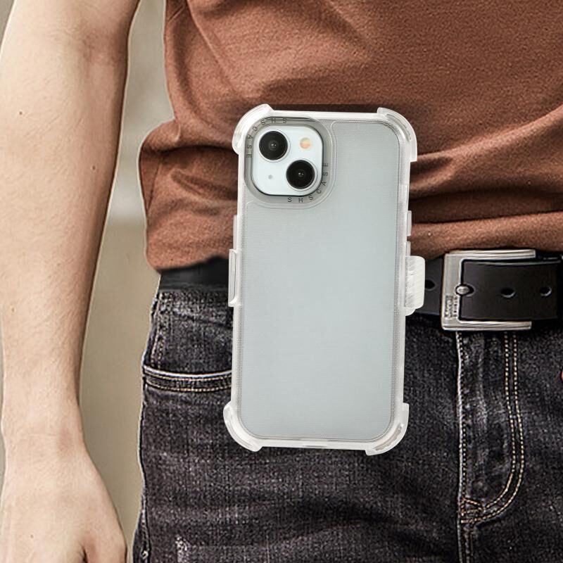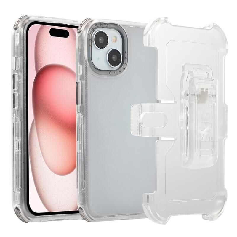 Θήκη τηλεφώνου για iPhone 15 από ματ πολυανθρακικό + TPU με κλιπ στην πλάτη (Λευκό)