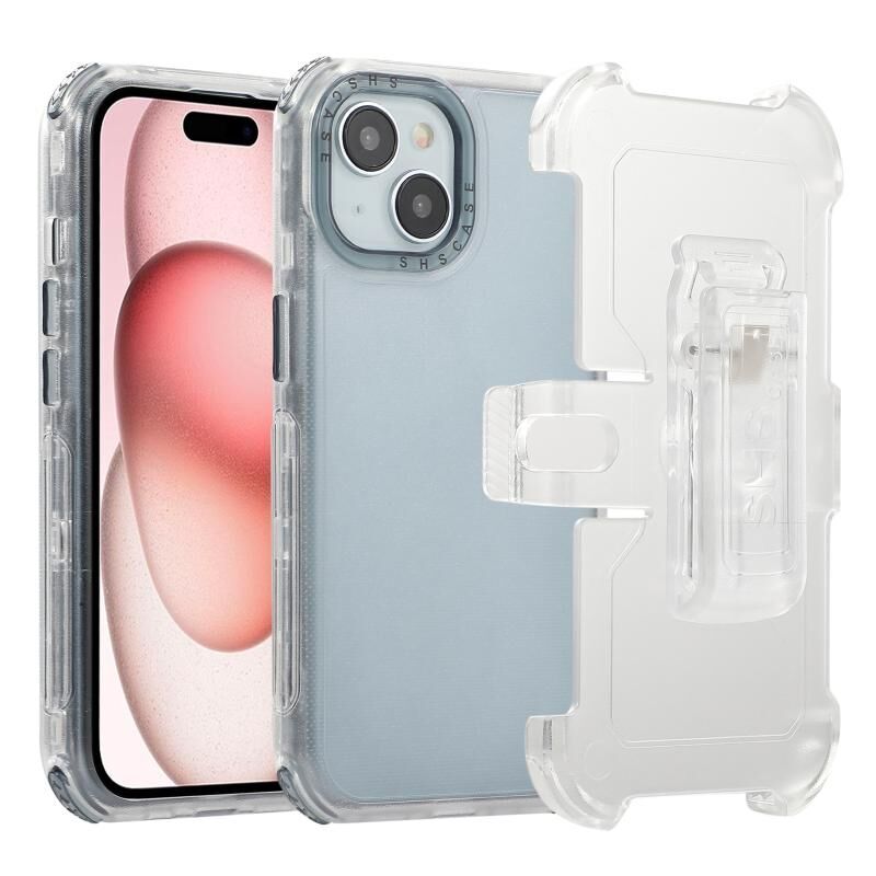 Θήκη τηλεφώνου για iPhone 15 από ματ πολυανθρακικό + TPU με κλιπ στην πλάτη (Λευκό)