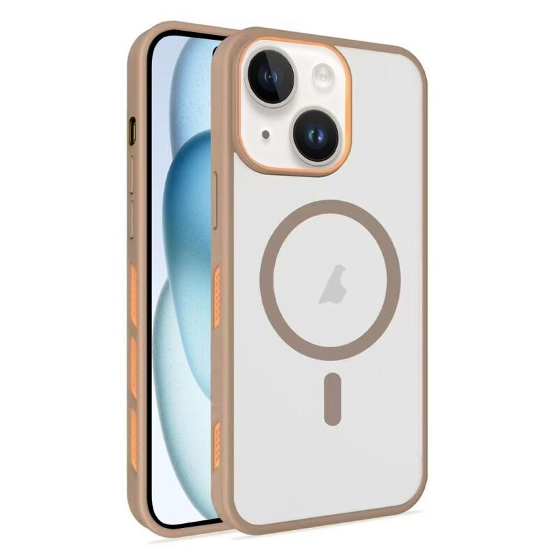 For iPhone 15 Frosted Translucent Side Ice Fog Cooling MagSafe Phone Case(Khaki)