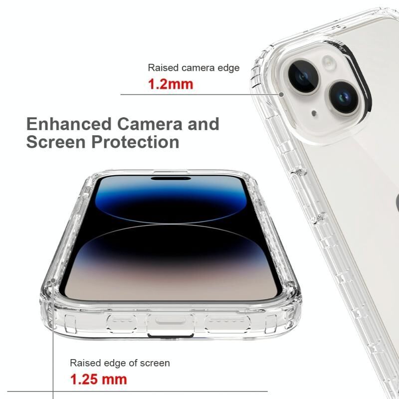 2. Υπερυψωμένα χείλη: Η προστατευτική θήκη διαθέτει αερόσακους στις τέσσερις γωνίες για να απορροφά τους κραδασμούς και να αποφεύγονται οι γρατζουνιές στις περισσότερες περιπτώσεις. Η μαλακή απορρόφηση κραδασμών TPU και τα υπερυψωμένα χείλη γύρω από την οθόνη και την κάμερα μπορούν να την προστατεύσουν από τυχαίες πτώσεις.