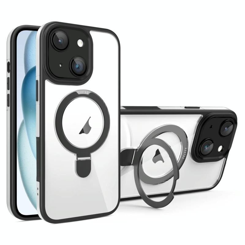 Θήκη κινητού τηλεφώνου πλήρους κάλυψης για iPhone 15 με προστασία φακού και βάση MagSafe, διαφανής (Μαύρο + Λευκό)