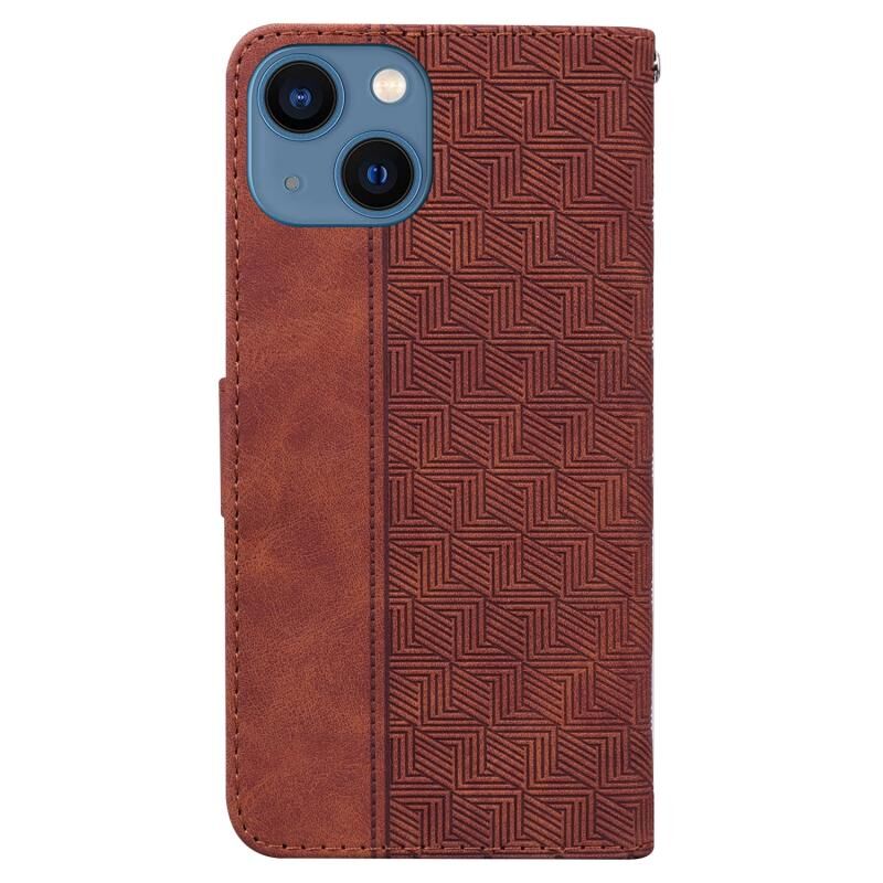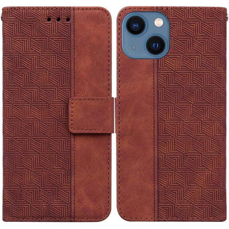 Θήκη τηλεφώνου δερμάτινη με γεωμετρική ανάγλυφη διακόσμηση για iPhone 15 (Καφέ)