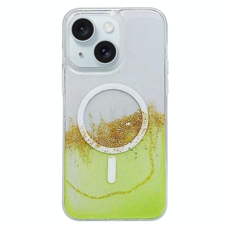 Θήκη τηλεφώνου για iPhone 15 με επιχρύσωση, υβριδική, διαφανής TPU με MagSafe (Πράσινη)