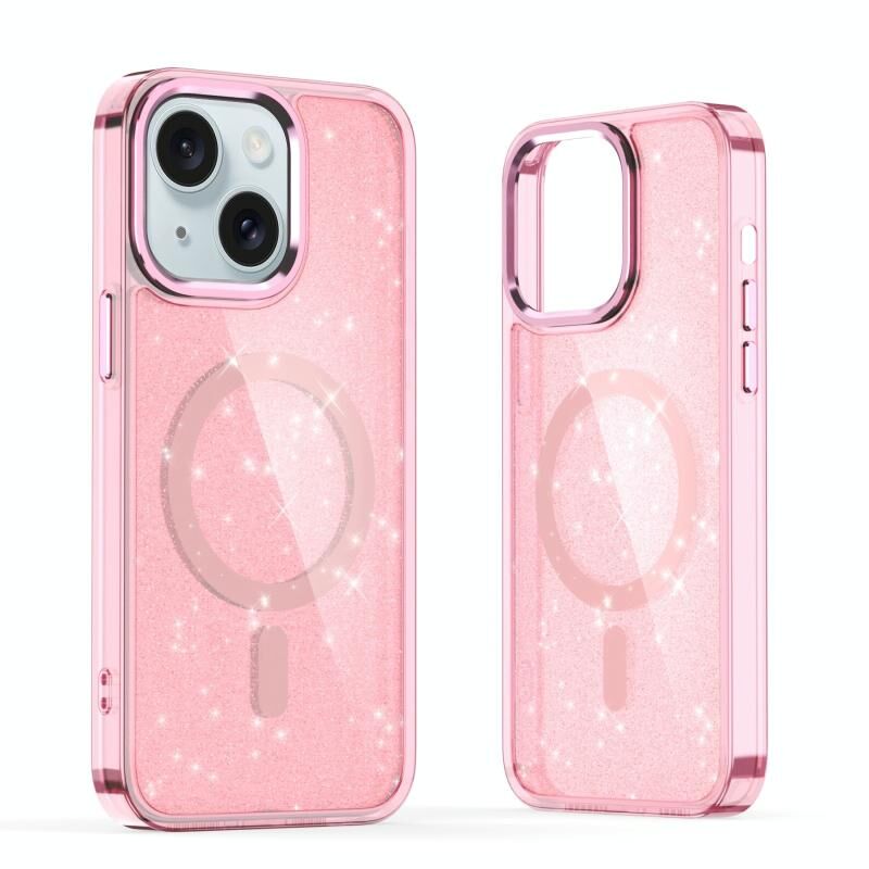 Θήκη για iPhone 15 με Glitter, MagSafe και αντικραδασμική προστασία (Ροζ)