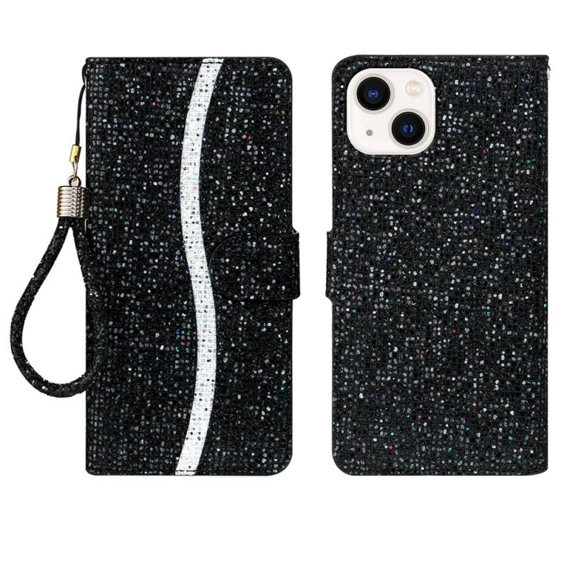 For iPhone 15 Glitter Powder Filp Leather Phone Case(Black)