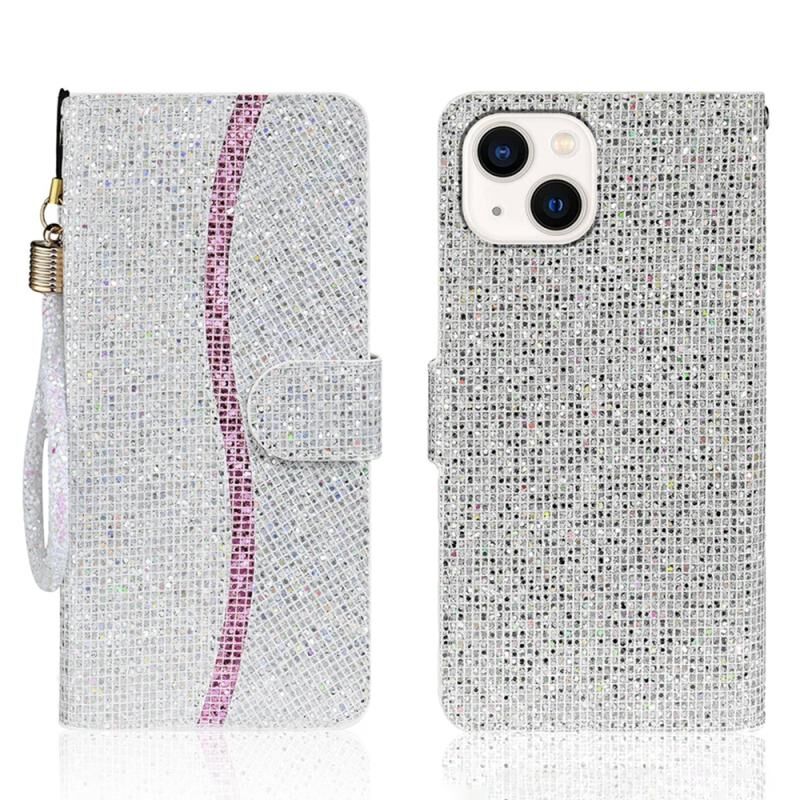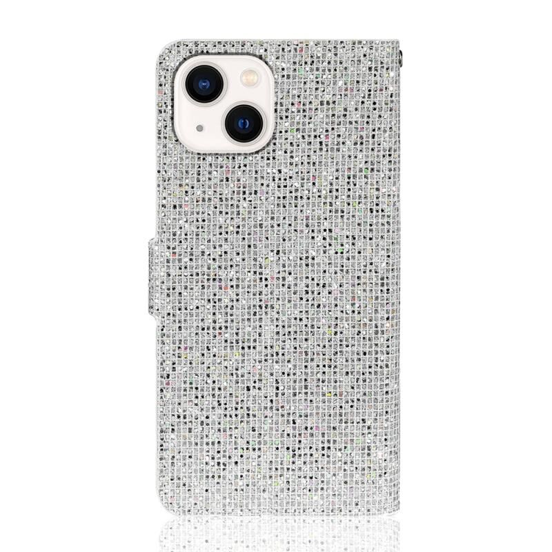 For iPhone 15 Glitter Powder Filp Leather Phone Case(Silver)