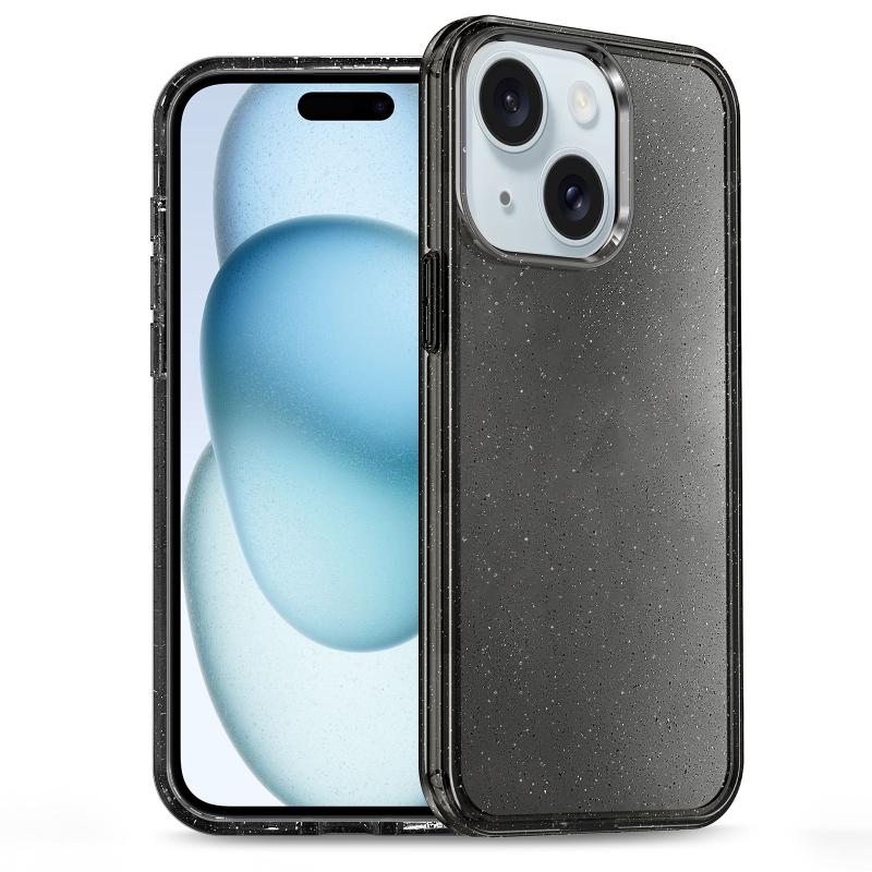 For iPhone 15 Glitter Powder TPU Hybrid PC Phone Case(Black)