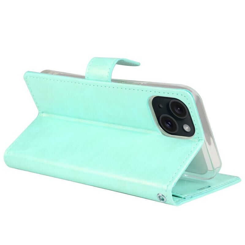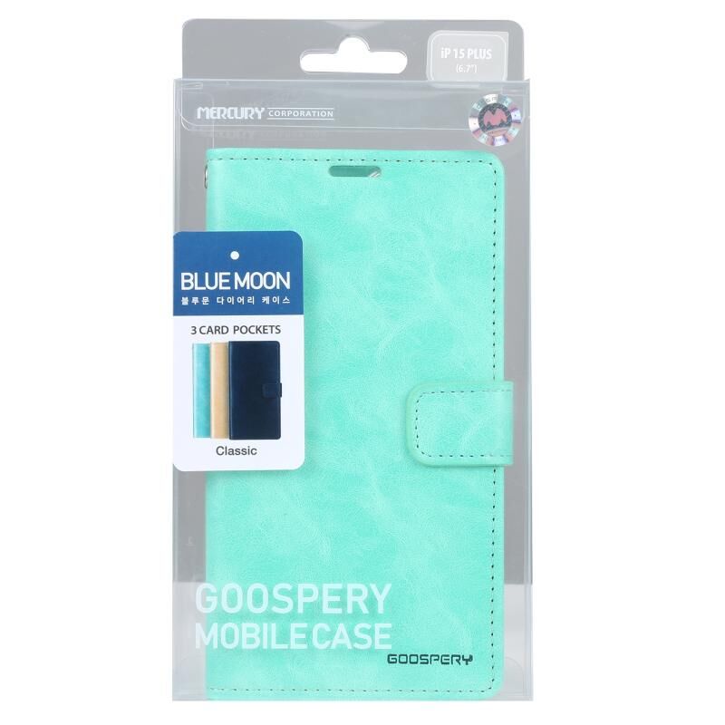 Θήκη τηλεφώνου GOOSPERY BLUE MOON για iPhone 15 από δέρμα Crazy Horse με υφή (Μέντας Πράσινο) (Μέντας πράσινο)