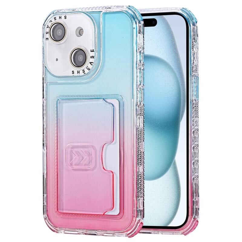 For iPhone 15 Gradient Color TPU + PC Card Slot Full Coverage Phone Case(Sky Blue Pink)