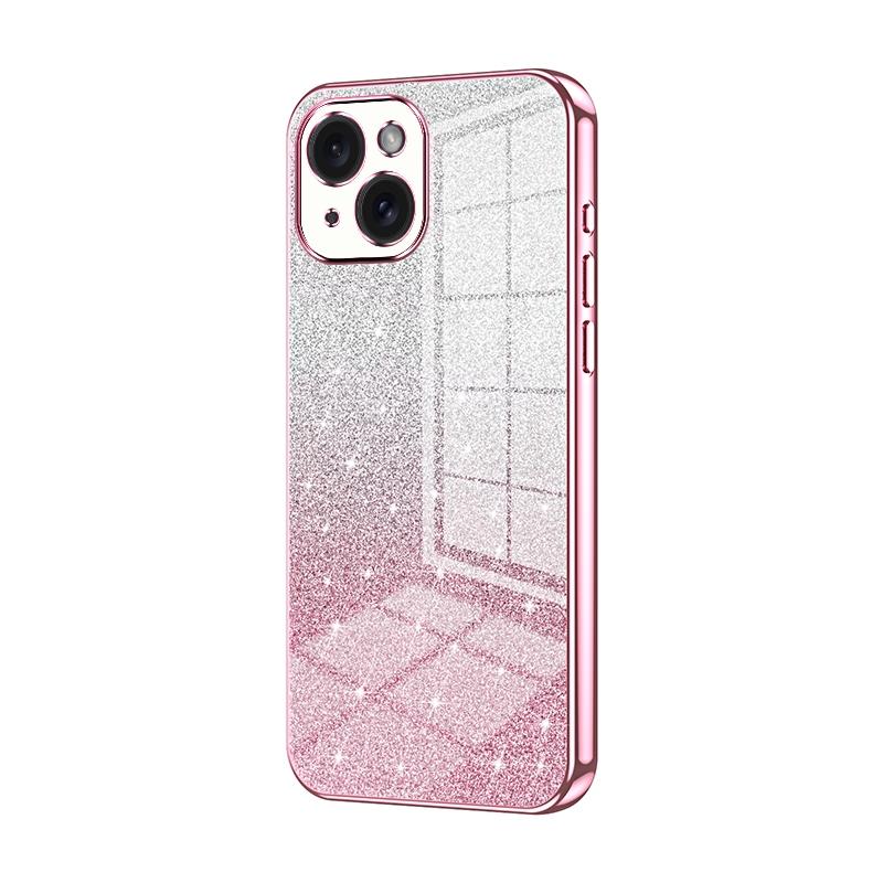 For iPhone 15 Gradient Glitter Powder Electroplated Phone Case(Pink)