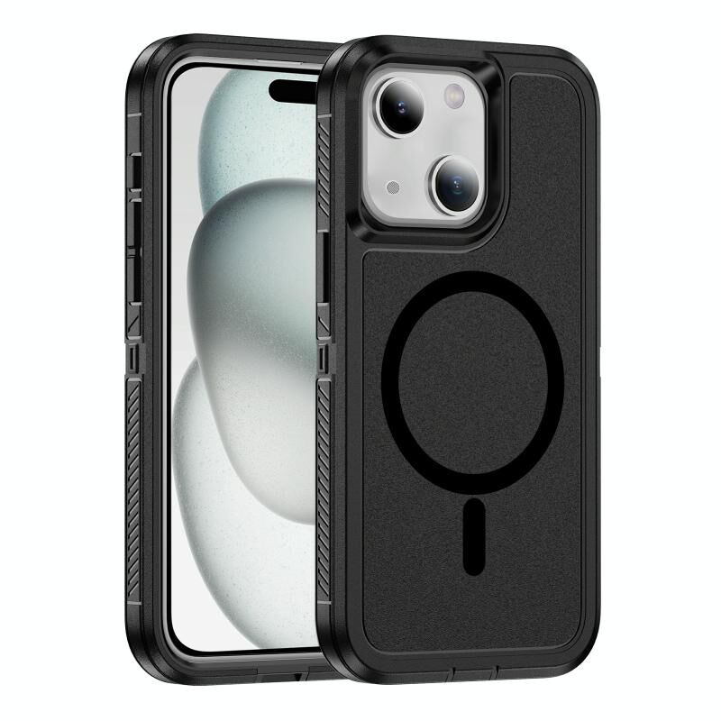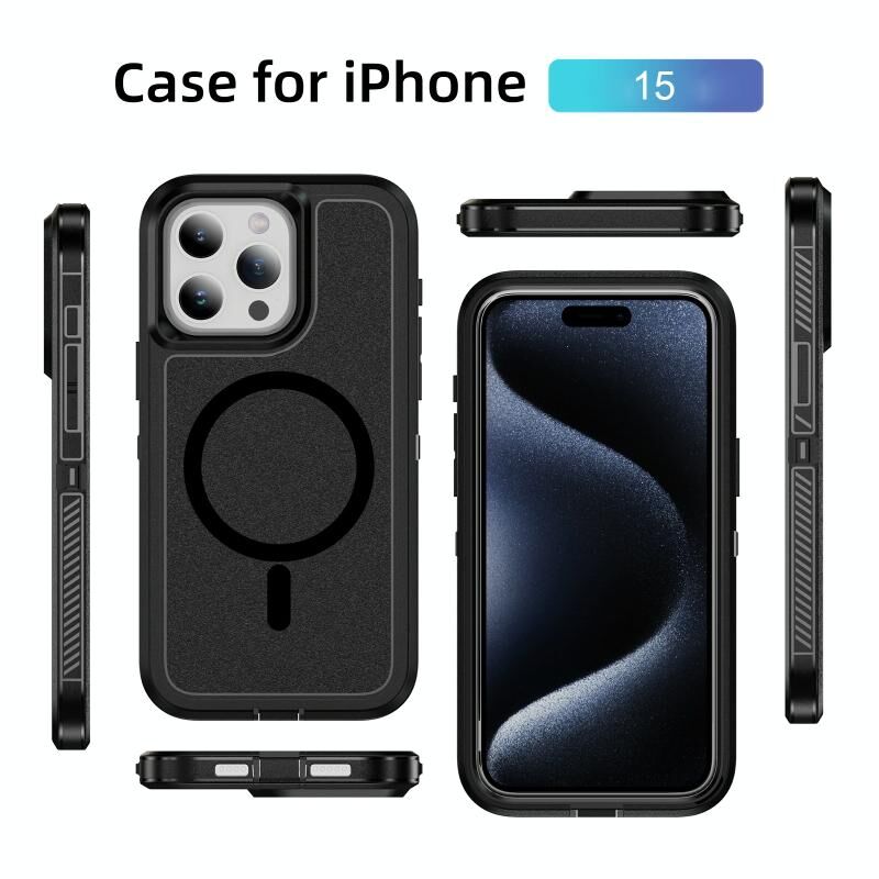 For iPhone 15 Guard Magsafe Magnetic Ring Matte Phone Case(Black)