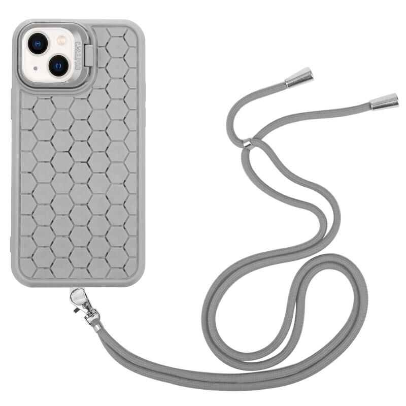 Θήκη τηλεφώνου MagSafe για iPhone 15 με σχέδιο κυψελωτού φακού που ακτινοβολεί και λουρί (Γκρι)