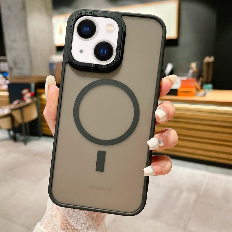 Θήκη τηλεφώνου MagSafe από ακρυλικό με μεταλλική υφή παγωμένου δέρματος για iPhone 15 (Μαύρο)