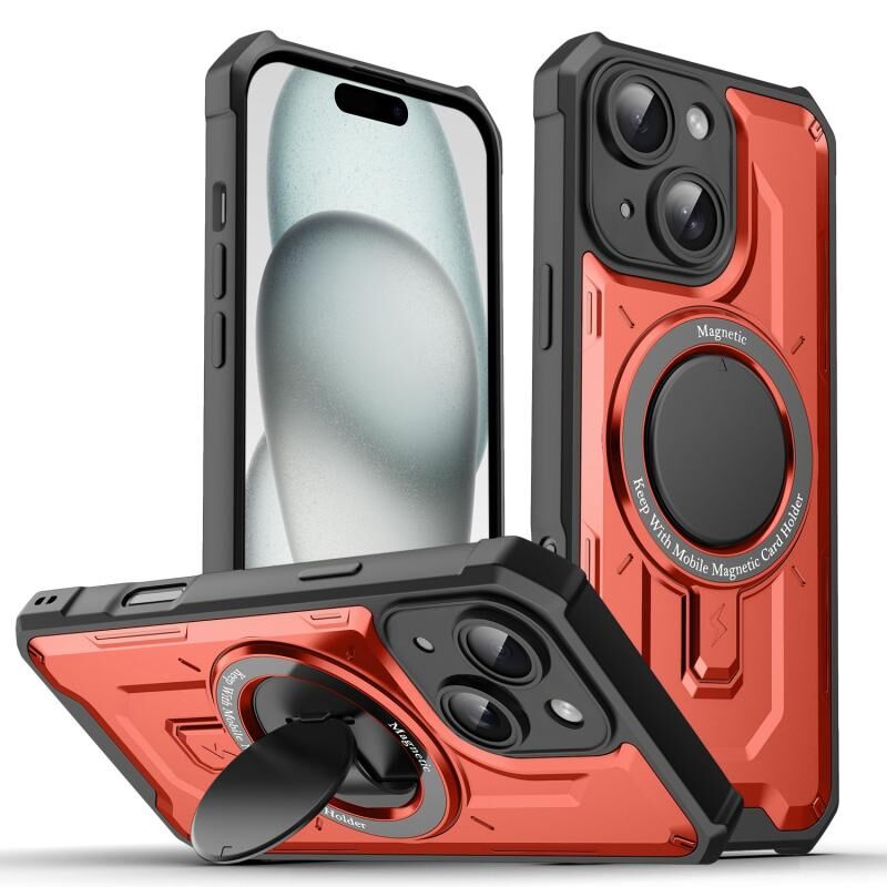For iPhone 15 Invisible Bracket MagSafe Magnetic Phone Case(Red)