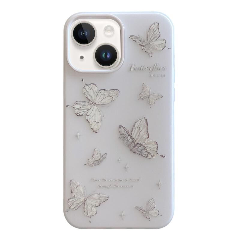 For iPhone 15 Jelly 2 in 1 TPU Hybrid PC Phone Case(Silver Butterflies)