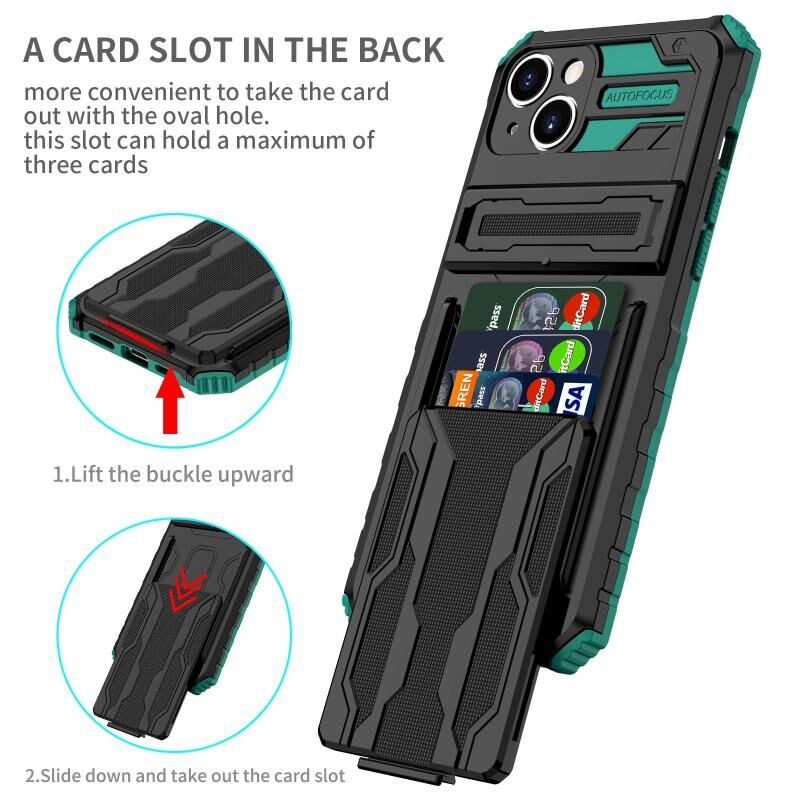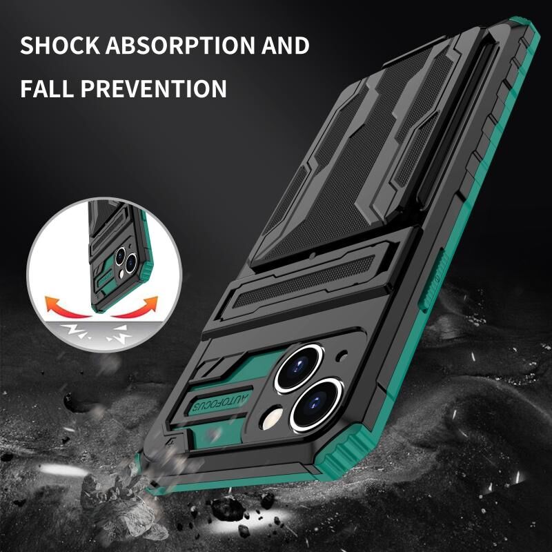 For iPhone 15 Kickstand Armor Card Wallet Phone Case(Deep Green)